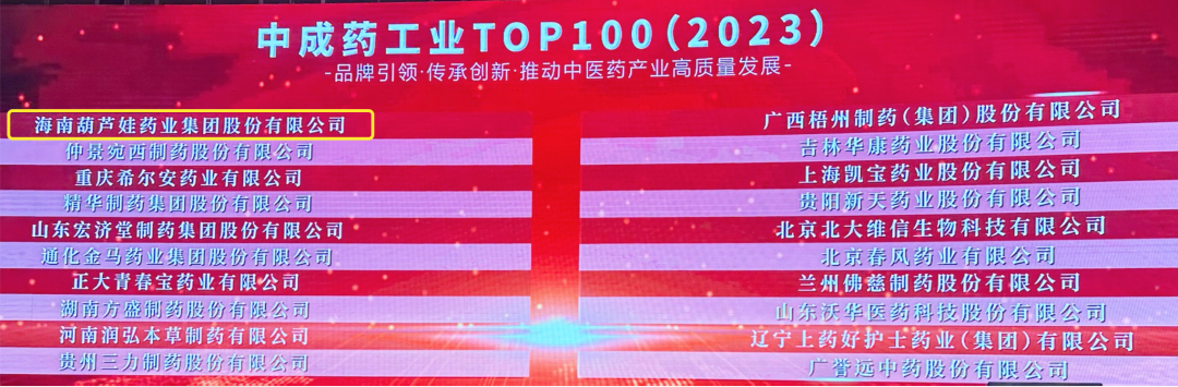会上,还发布了“2023中成药工业TOP100”榜单,PA尊龙时凯药业集团荣耀上榜。